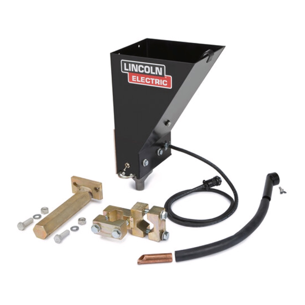 Conjunto de tolva de fundente para aplicaciones de arco sumergido. Incluye tolva de fundente y accesorios de montaje.